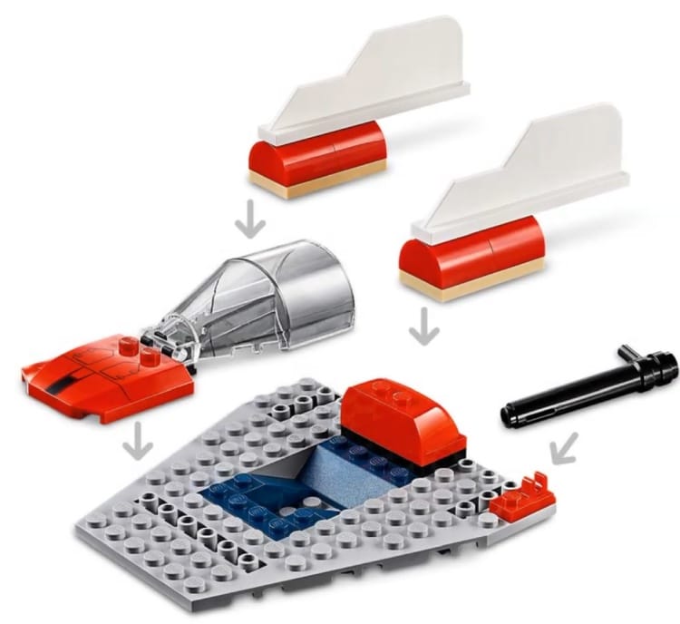 | 2 X Slope, Curved 3 x 2 No Studs with SW A-wing Hull Plates and Red Triangle Pattern | White |   |  |