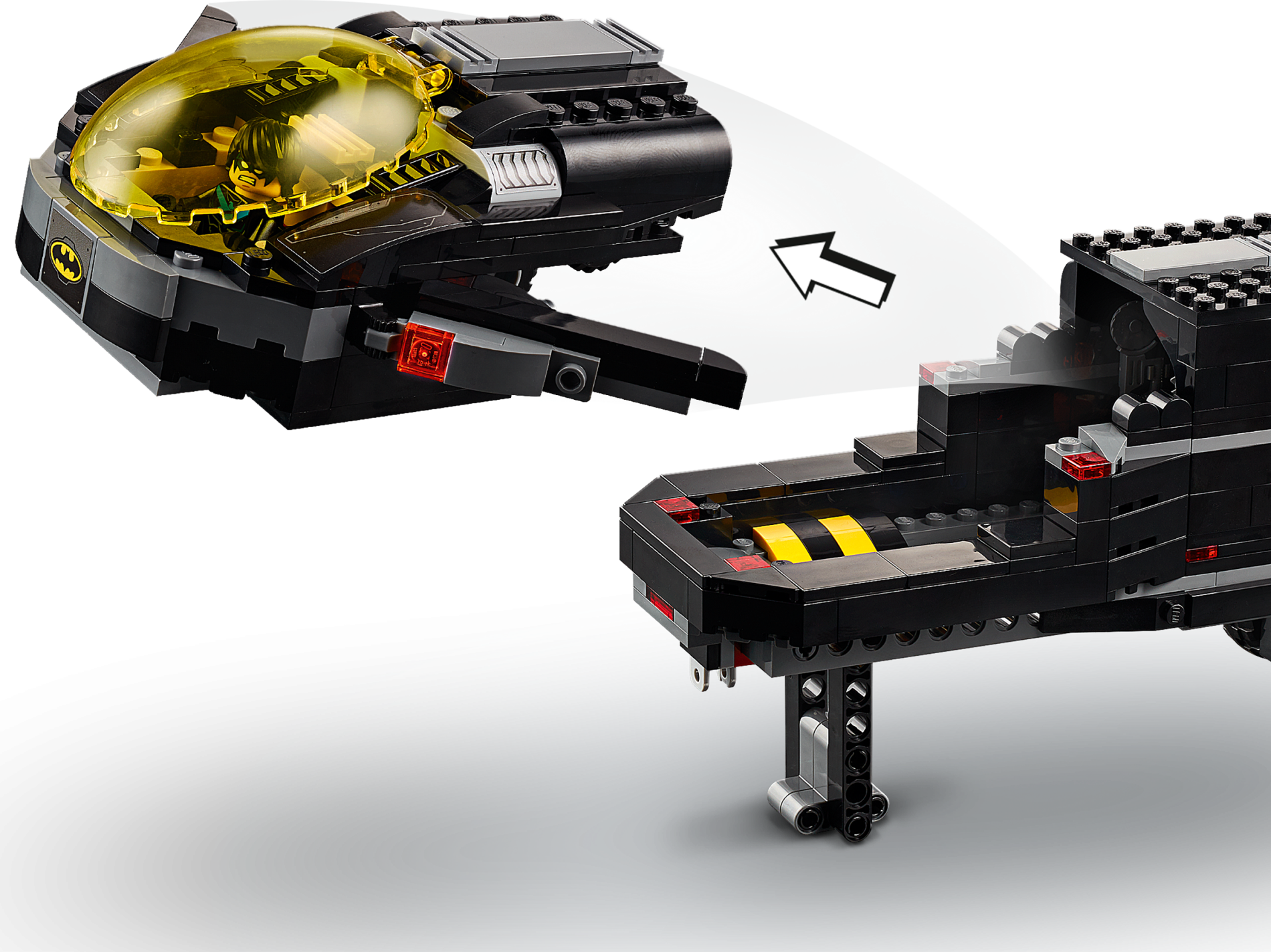 | 1 X Slope, Curved 2 x 4 x 2/3 with Bottom Tubes with Vents and Yellow Arrow Pattern Model Right Side (Sticker) - Set 76160 | Black |   |  |