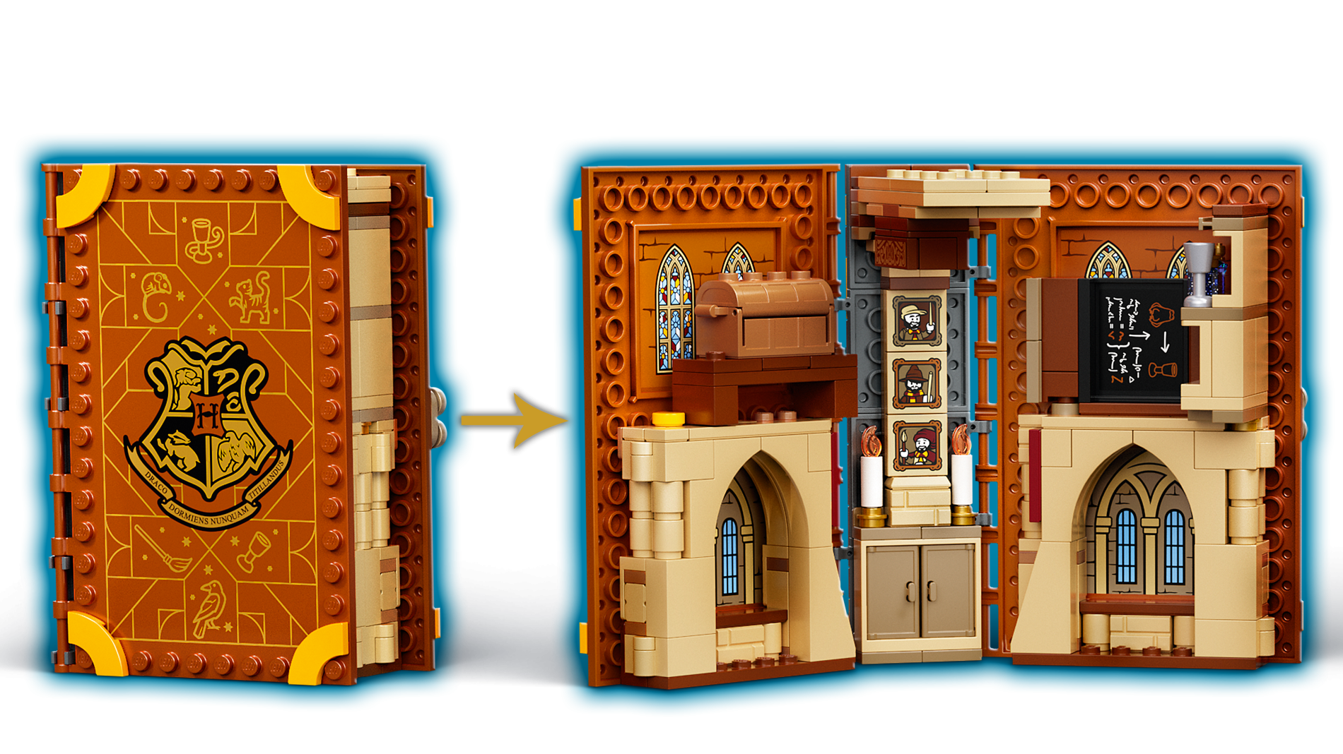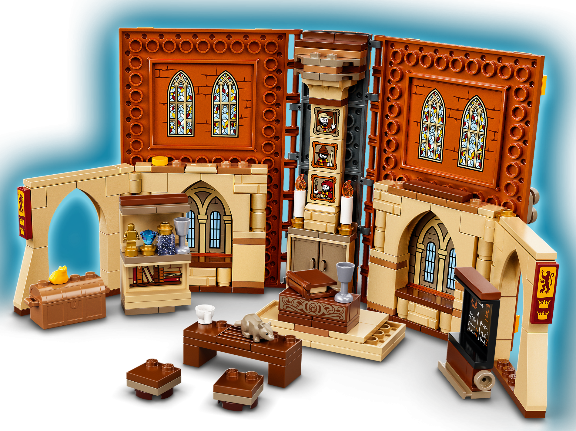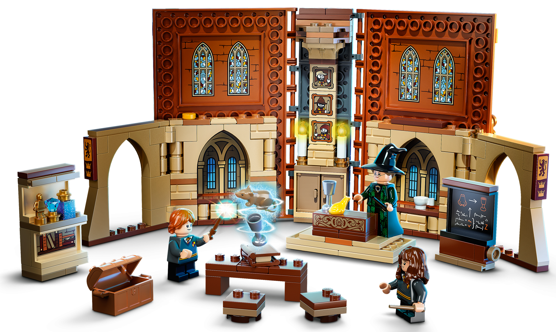 | 1 X Panel 1 x 4 x 3 with Side Supports - Hollow Studs with Goblet, Frog, White Arrows and Magic Spell Writing on Blackboard Pattern on Inside (Sticker) - Set 76382 | Black |   |  |