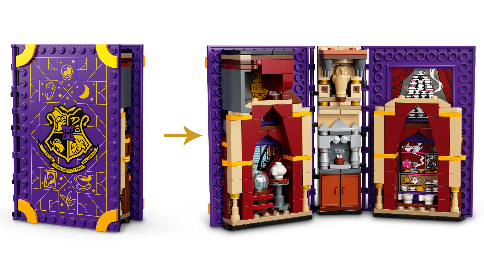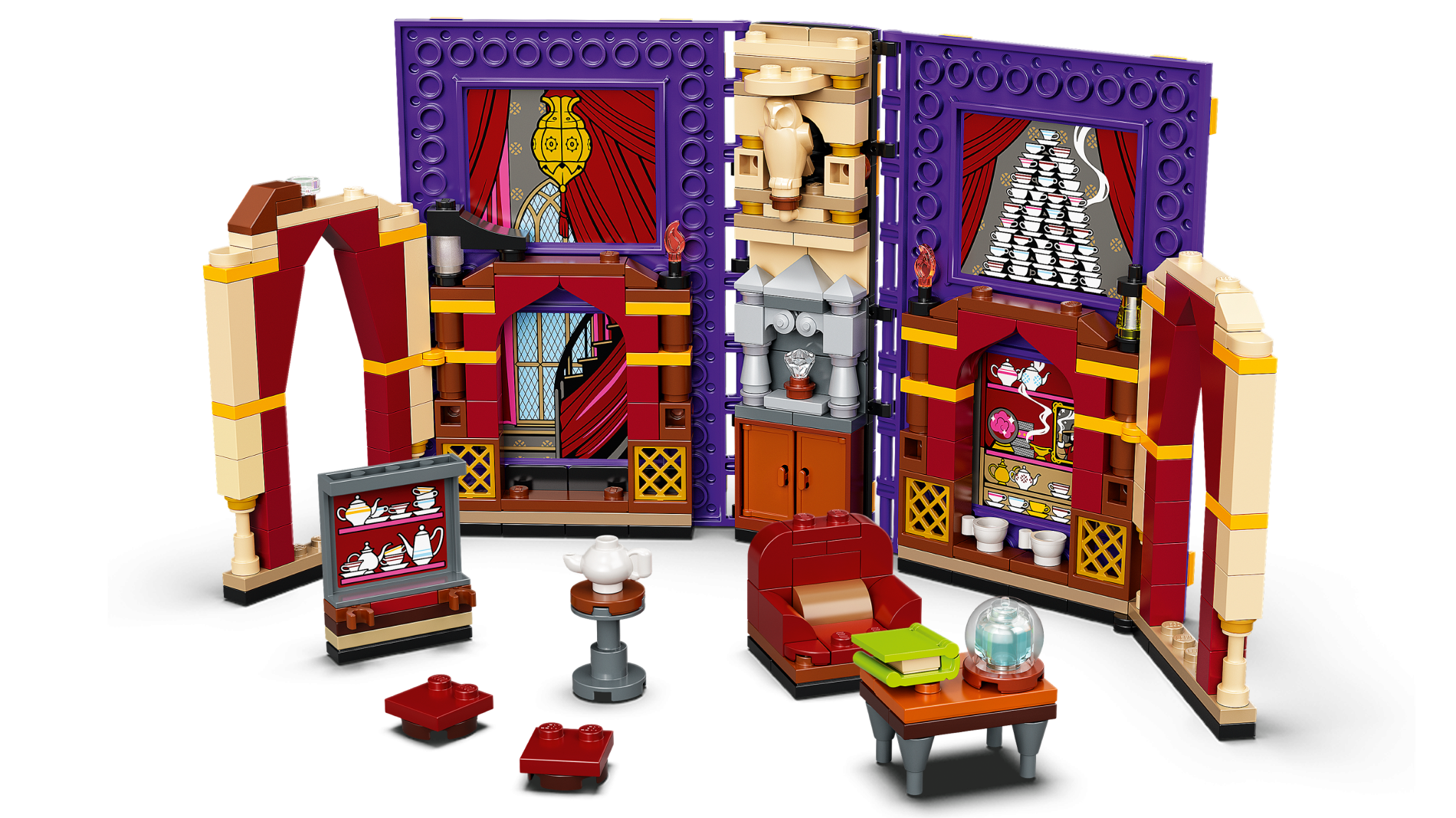 | 1 X Tile, Modified 10 x 16 with Studs on Edges and Bar Handles with Teacups, Curtains, and Shelves with Portrait and Crystal Ball Pattern (Stickers) - Set 76396 | Dark Purple |   |  |
