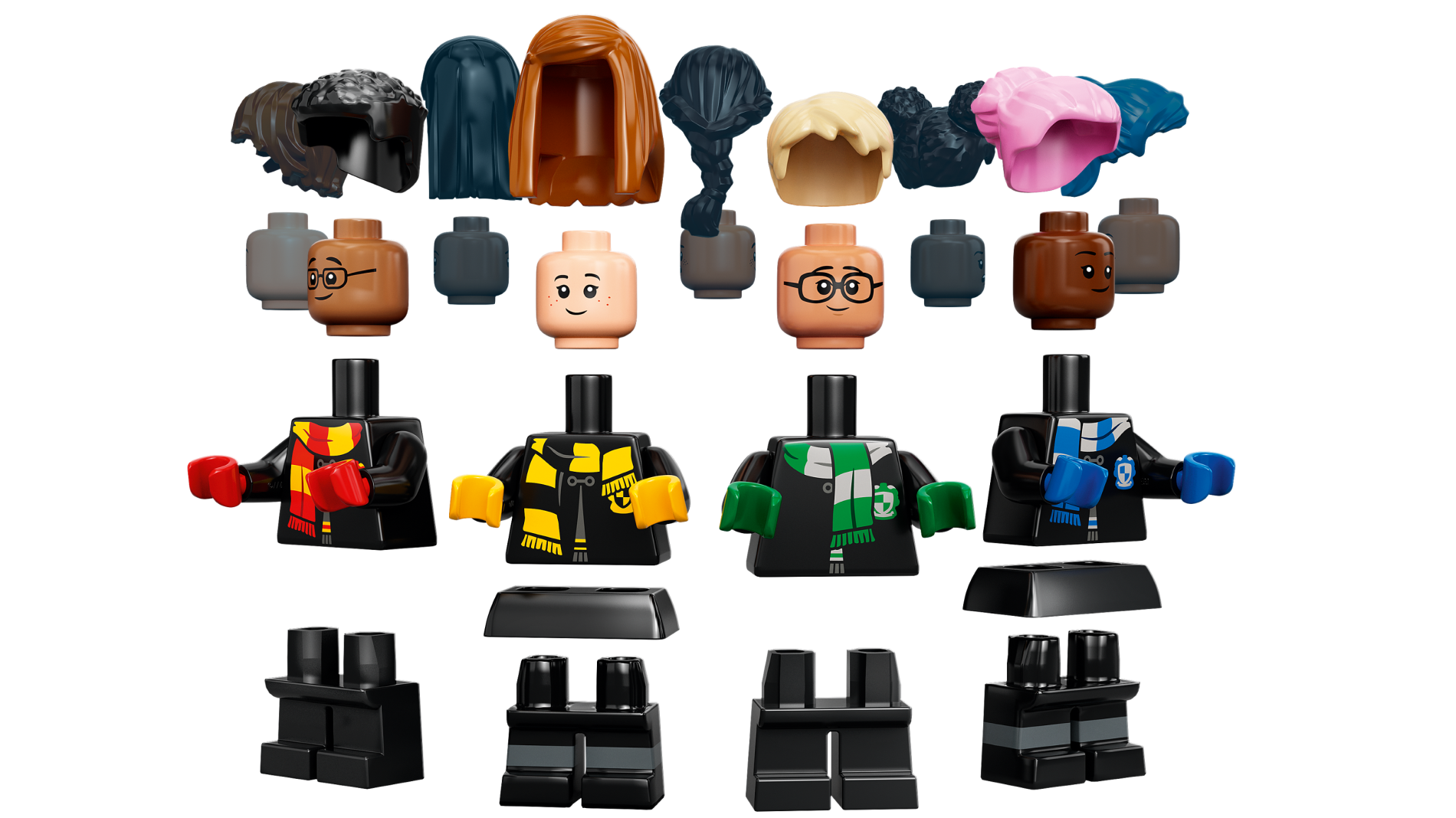 | 1 X Torso Hogwarts Robe Clasped with Ravenclaw Shield and Scarf Pattern / Black Arms / Blue Hands | Black |   |  |
