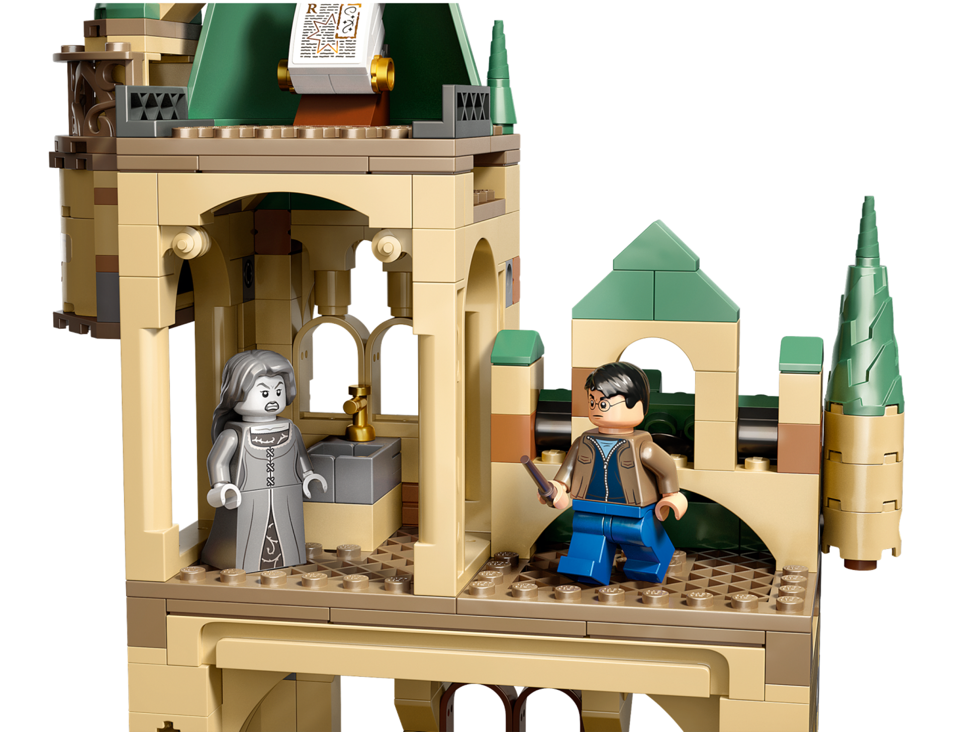 | 2 X Tile, Modified 2 x 3 Pentagonal with Gold Capital Letter H, Black Hogwarts Crest, Helmet and Plume Feathers Pattern (Sticker) - Set 76413 | Light Bluish Gray |   |  |