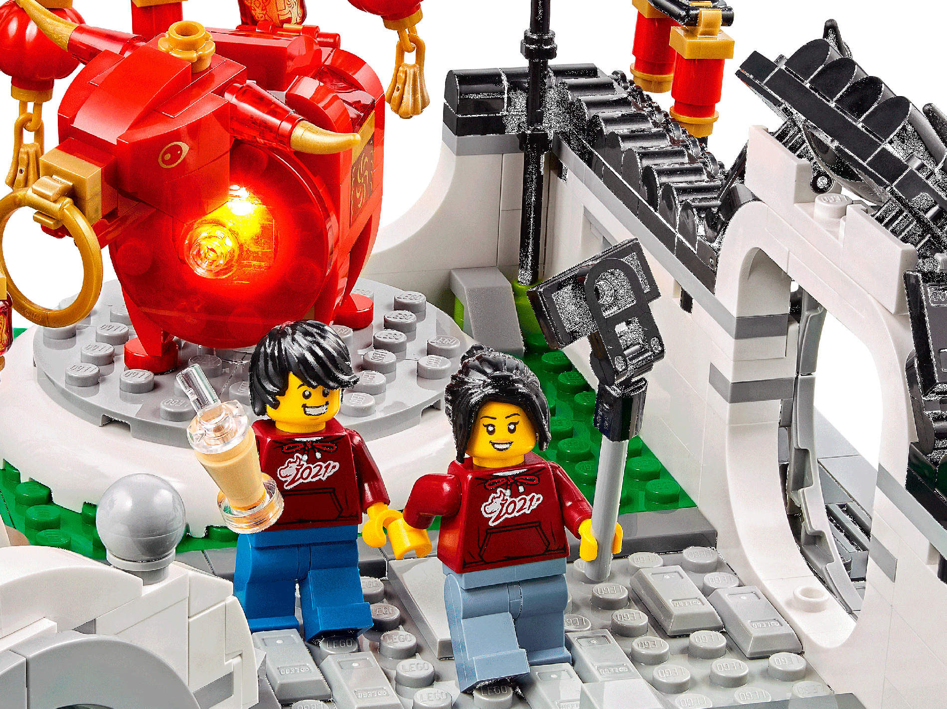 | 2 X Tile 2 x 2 with Groove with Gold Chinese Logogram '鬧元宵' (Celebrate the Lantern Festival) Pattern | Red |   |  |