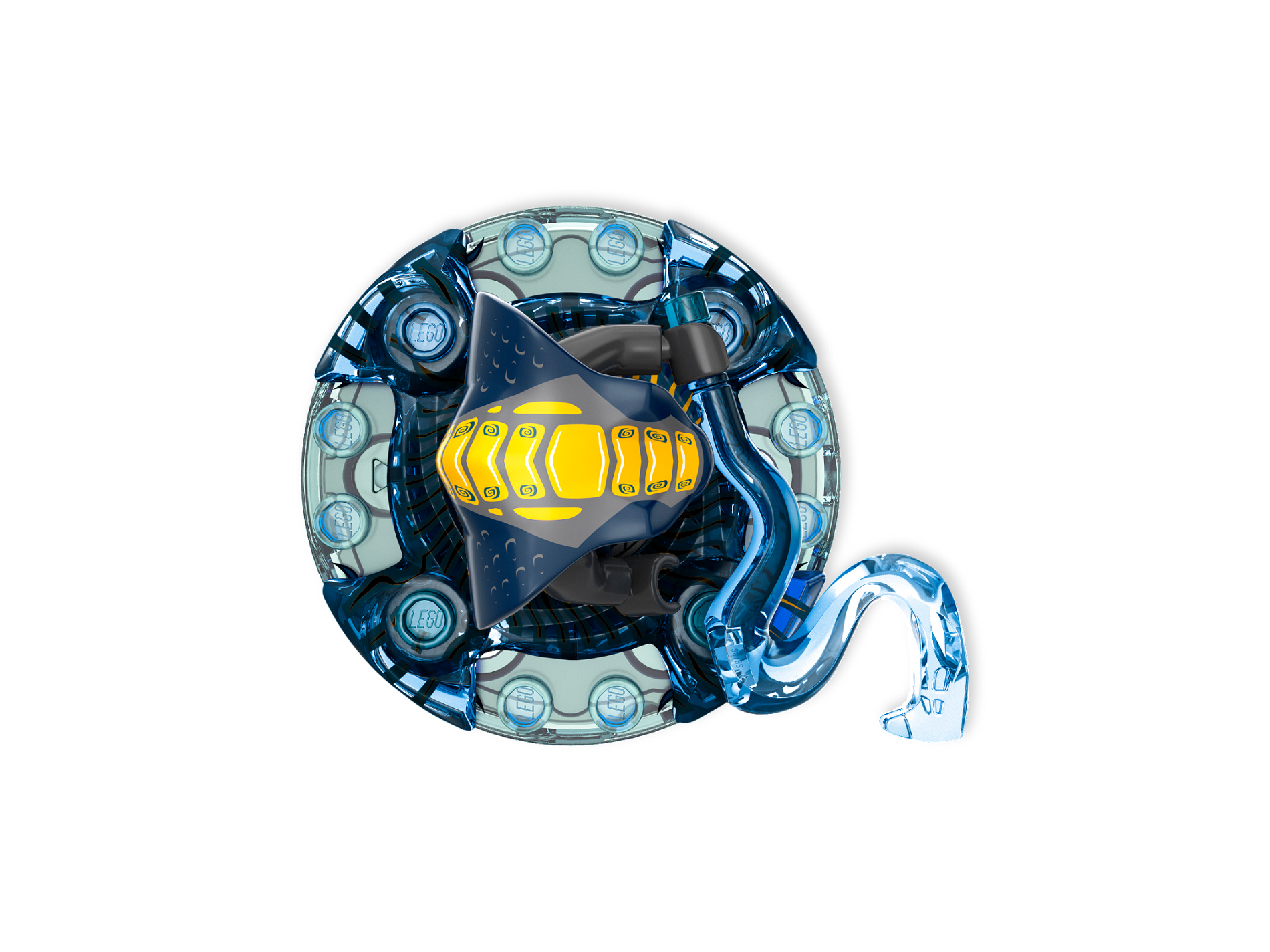 Ring 4 x 4 with 2 x 2 Hole and 4 Swirl Ends with Yellow Scales Pattern (Ninjago Spinner Crown)
