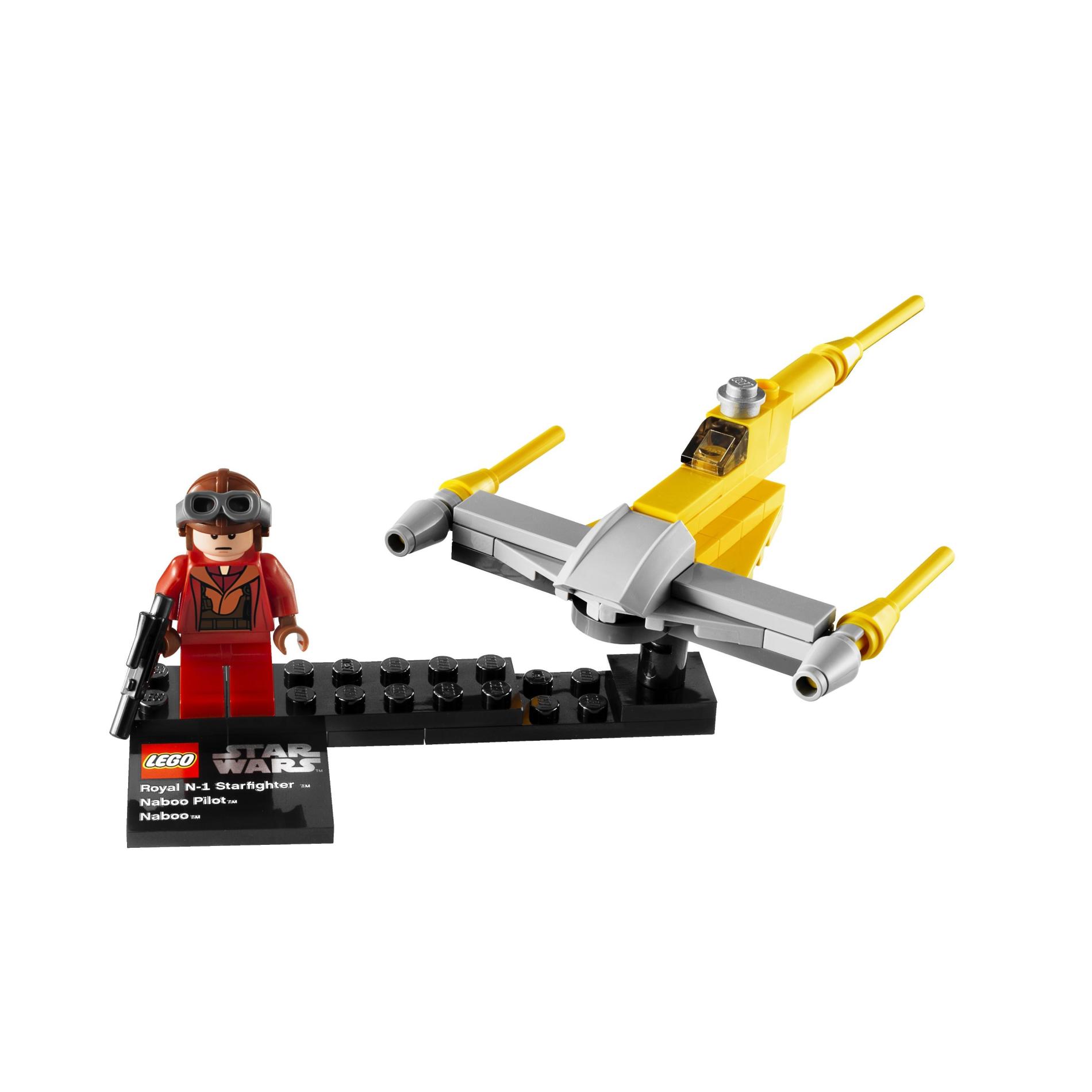 | 1 X Tile, Modified 4 x 4 with Studs on Edge with Lego Star Wars Logo and 'Royal N-1 Starfighter Naboo Pilot Naboo' Pattern | Black |   |  |