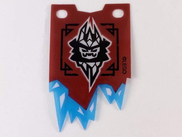 70678pls01a | Plastic Part for Set 70678 - Dark Red Tattered Flag with Black and White Ice Emperor Crest and Trans-Light Blue Icicles, LEGO Copyright on Right Pattern |