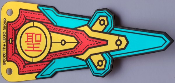 80012pls01d | Plastic Part for Set 80012 - Pennant Flag with Red Band, Black Stitching, Dark Turquoise and Gold Panels, and Chinese Logogram '聖' (Saint) Pattern |