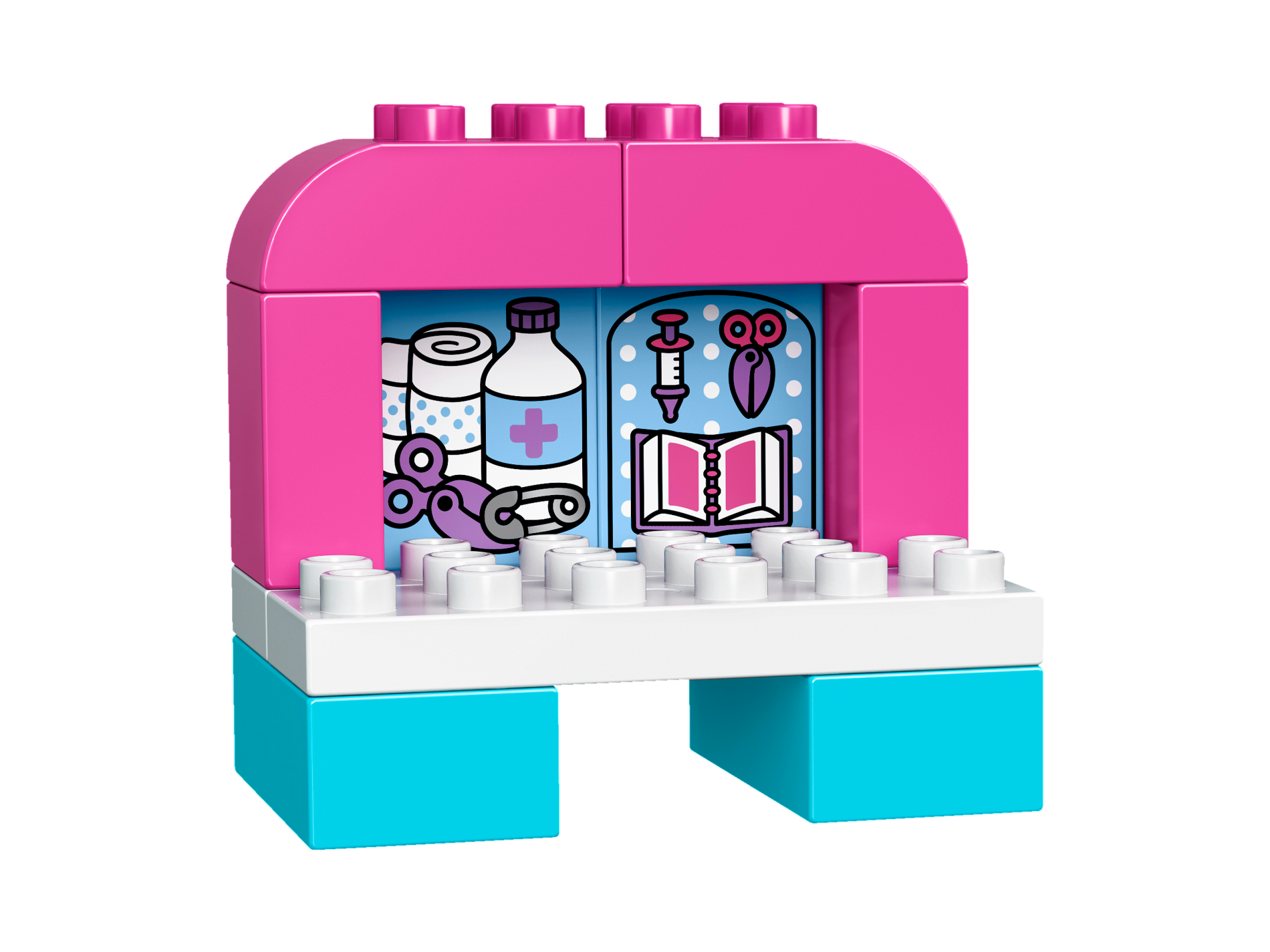 Duplo, Brick 1 x 2 x 2 with Scissors, Book and Syringe Pattern
