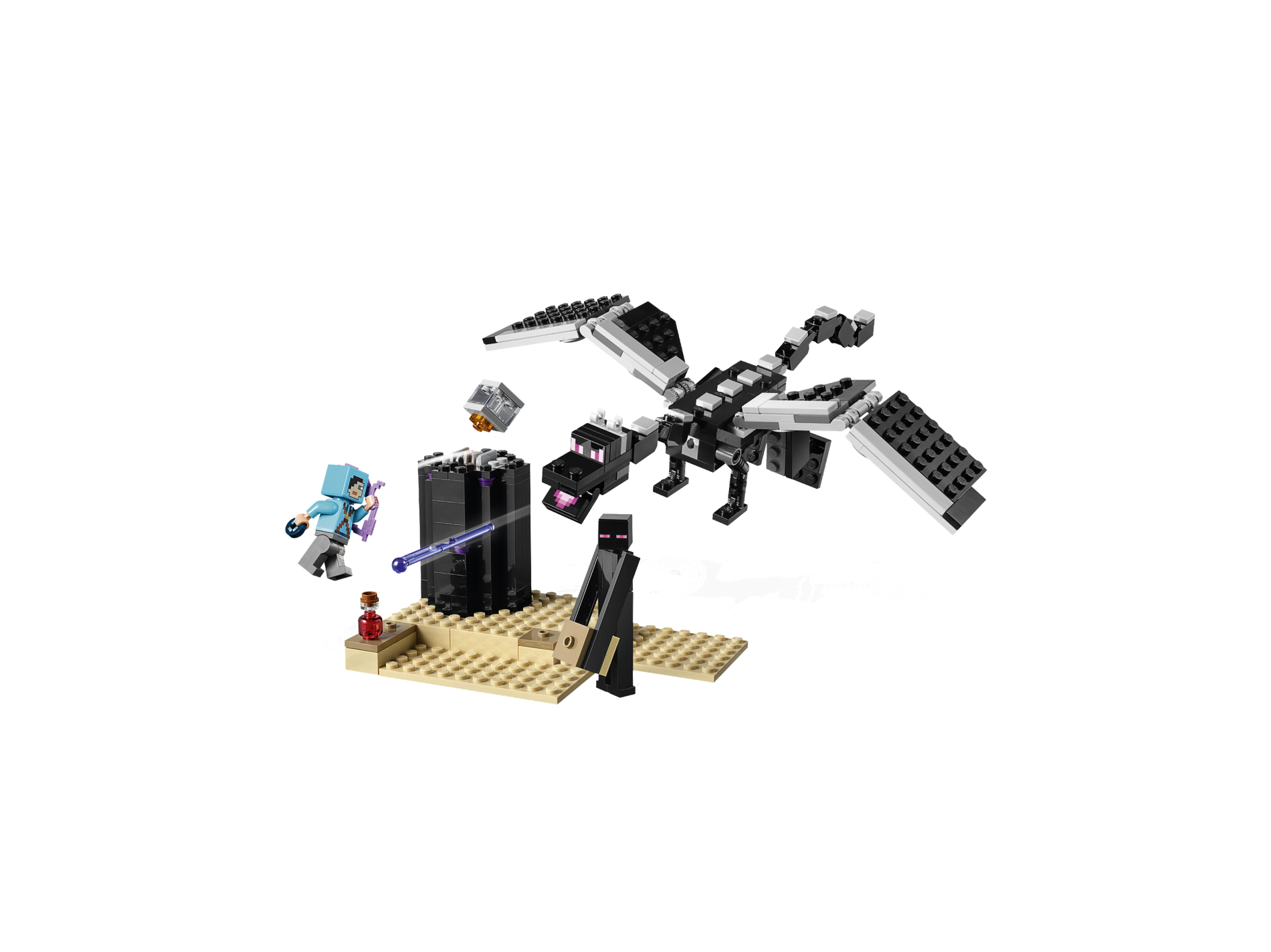 | 1 X Tile 1 x 2 with Groove with Pixelated Pink and Magenta Eyes Pattern (Minecraft Dragon) | Black |   |  |