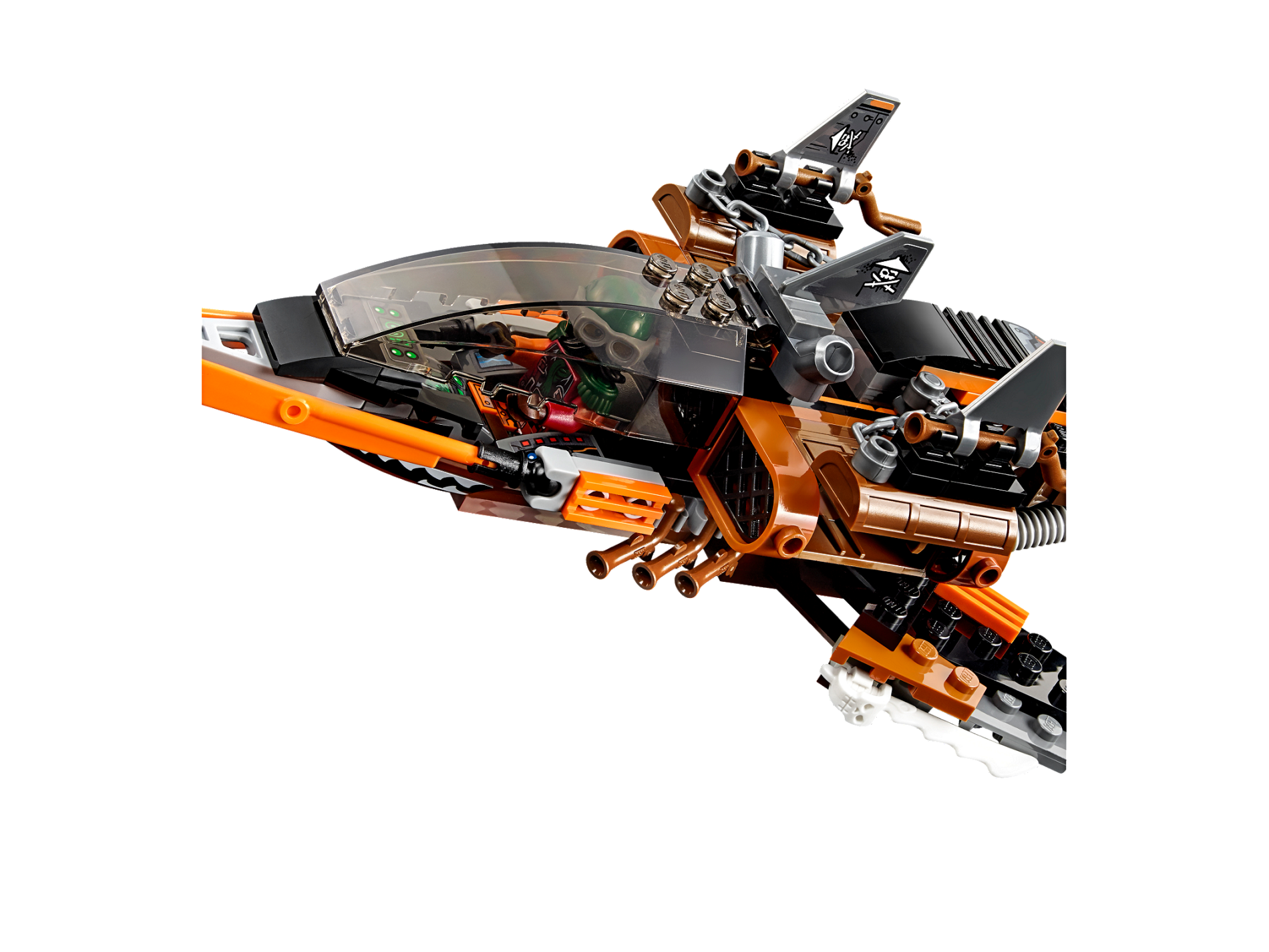 | 1 X Slope, Curved 2 x 2 No Studs with Orange Handle, Orange and Black Arrow and Open Hatch with Sprockets and Chain Pattern (Sticker) - Set 70601 | Black |   |  |