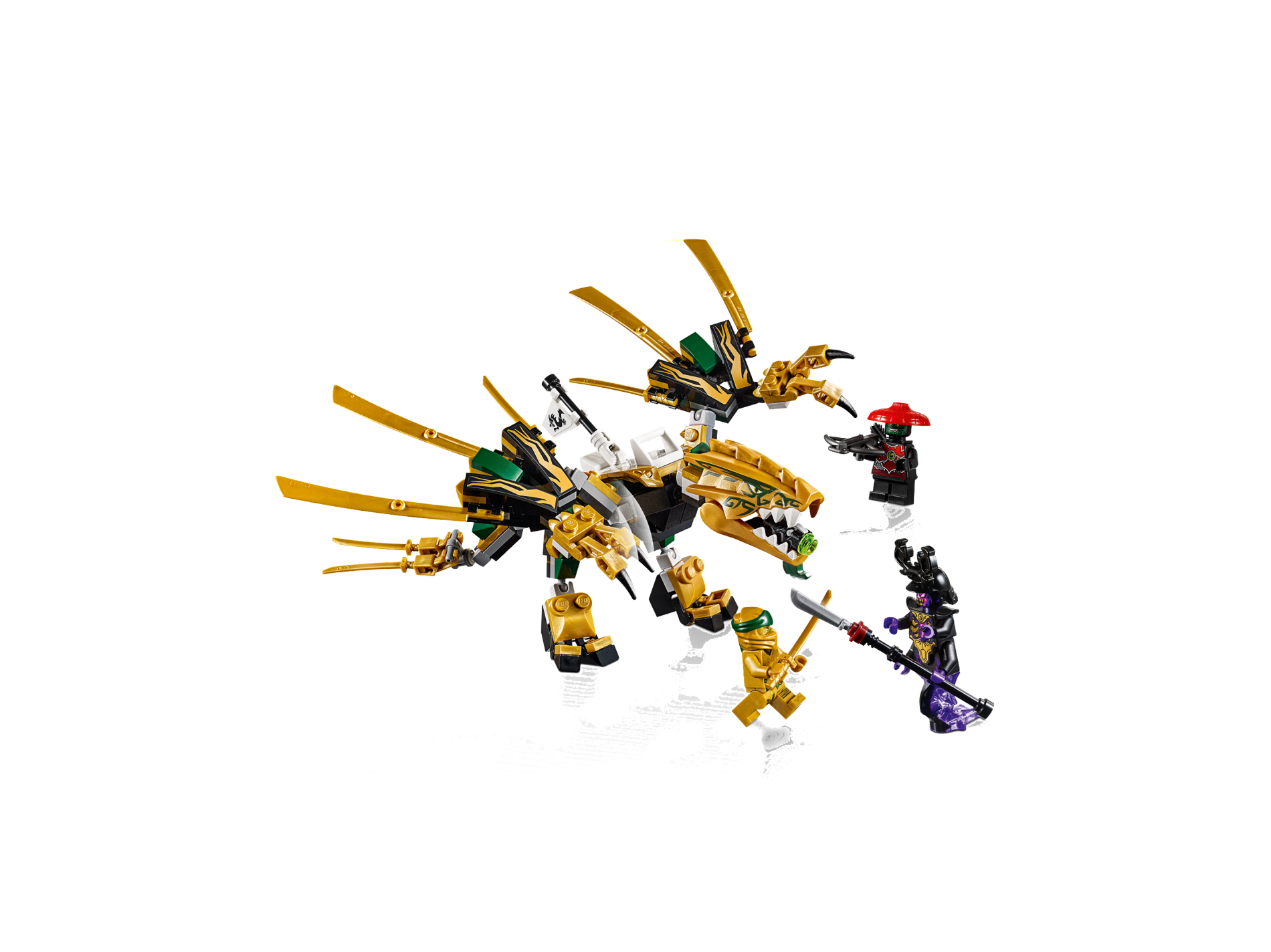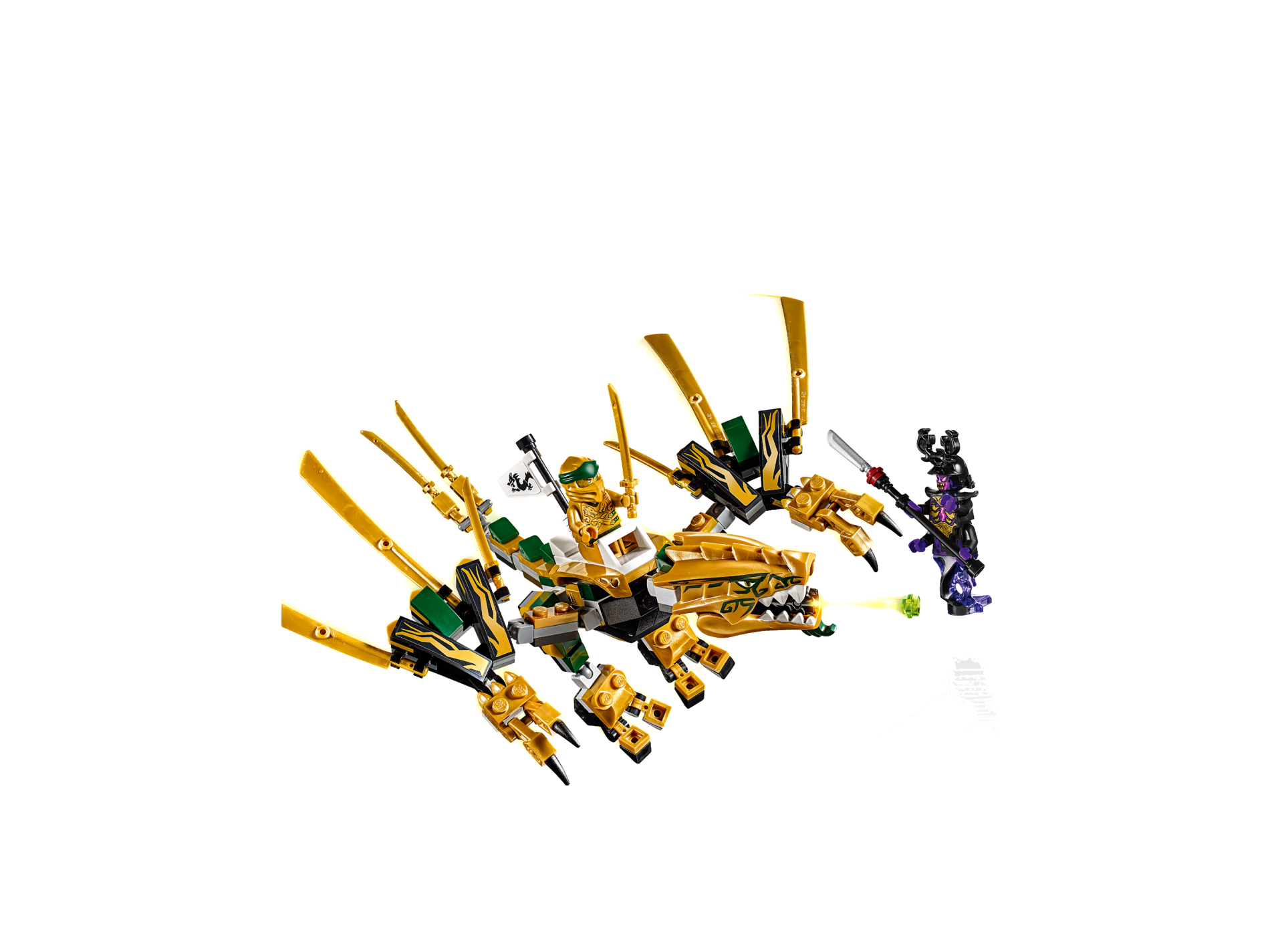 | 1 X Dragon Head (Ninjago) Lower Jaw with White Teeth and Dark Green Beard and Spines Pattern | Pearl Gold |   |  |