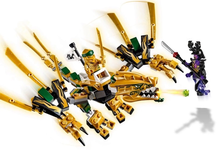 | 1 X Dragon Head (Ninjago) Upper Jaw with White Teeth, Gold Eyes, and Dark Green Decorations Pattern | Pearl Gold |   |  |