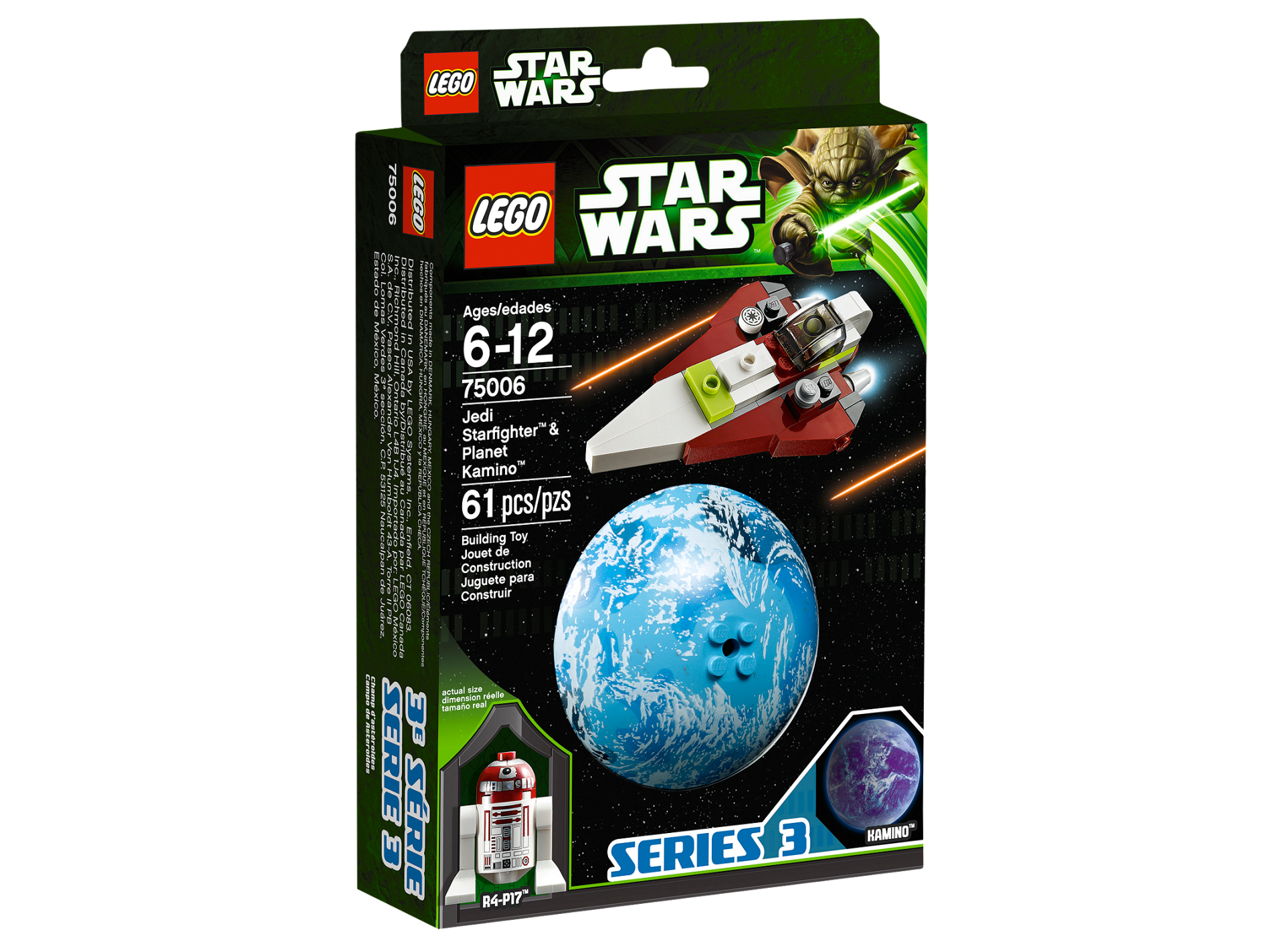 | 1 X Tile, Modified 4 x 4 with Studs on Edge with Lego Star Wars Logo and 'Delta-7 Light Interceptor R4-P17 Kamino' Pattern - Set 75006 | Black |   |  |