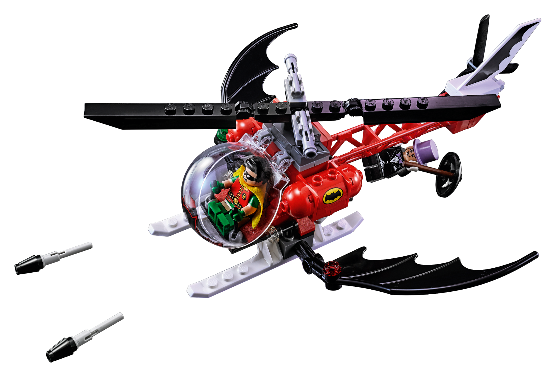 | 2 X Brick, Modified 2 x 2 Curved Top with 2 Top Studs with Black Bat Symbol in Yellow Oval Pattern (Sticker) - Set 76052 | Red |   |  |
