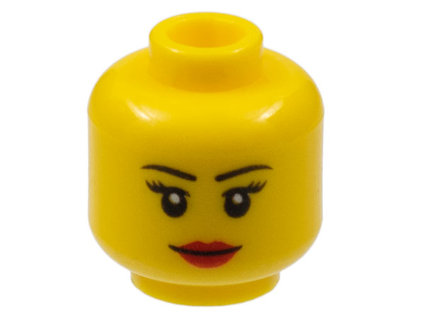 | 1 X Minifig, Head Female with Black Thin Eyebrows, Eyelashes, White Pupils and Red Lips Smile Pattern - Stud Recessed | Yellow |   | ![]() |