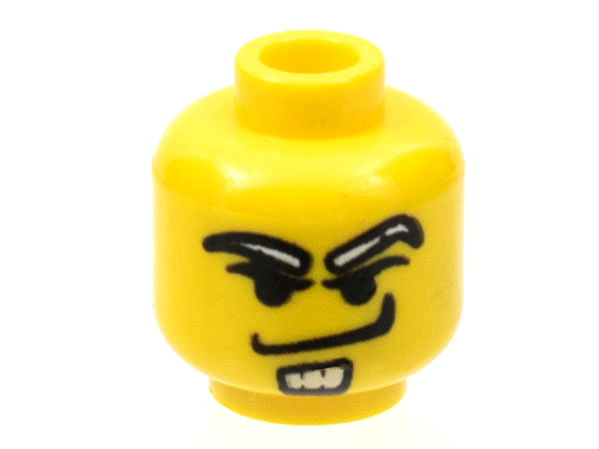 1 X Minifig, Head Male White Eyebrows and Goatee, Angry Smirk Pattern - Blocked Open Stud Yellow