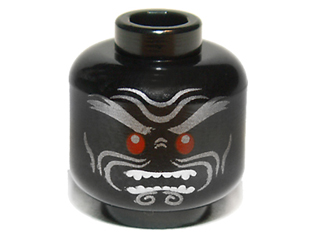 1 X Minifig, Head Red Eyes, White Teeth and Silver Wrinkles Pattern - Blocked Open Stud Black