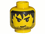 Name Color 1 X Minifig, Head Male Stubble, Black Messy Hair, and Angry Eyebrows Pattern - Blocked Open Stud Yellow